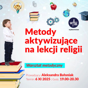 AktualnościSpotkania szkoleniowe Wydawnictwo WAM zaprasza na warsztaty metodyczne on-line: „Metody aktywizujące na lekcji religii” 30 października 20253 tygodnie ksGrzegorz 157 Views Warsztat odbędzie się 6 listopada 2025 r., godz. 19.00-20.30 Prowadzącą będzie p. Aleksandra Bałoniak Więcej informacji TUTAJ Link do zapisów TUTAJ