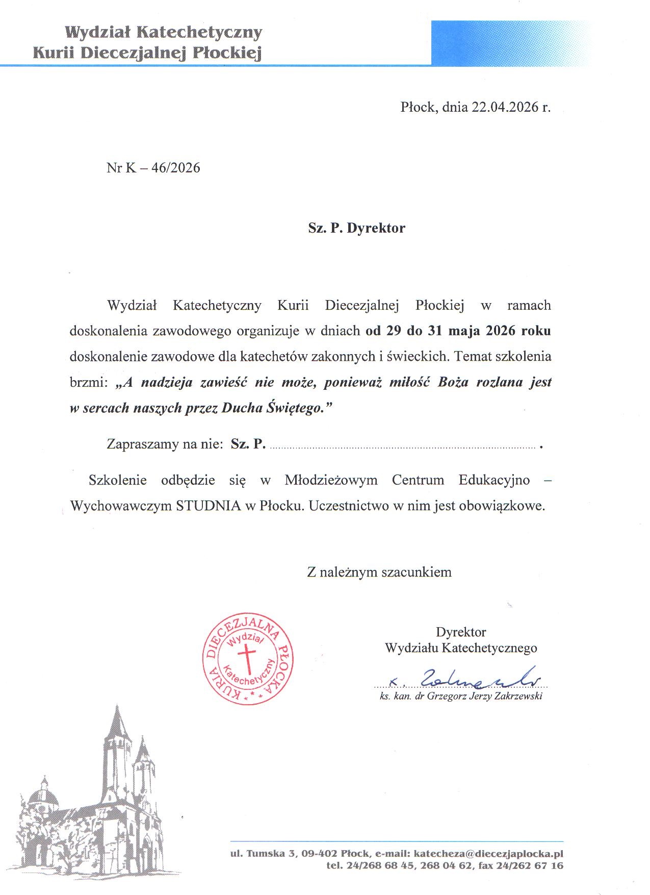 Pismo dla dyrekcji – spotkanie szkoleniowe w Płocku w dniach 29-31 maja 2026 r.